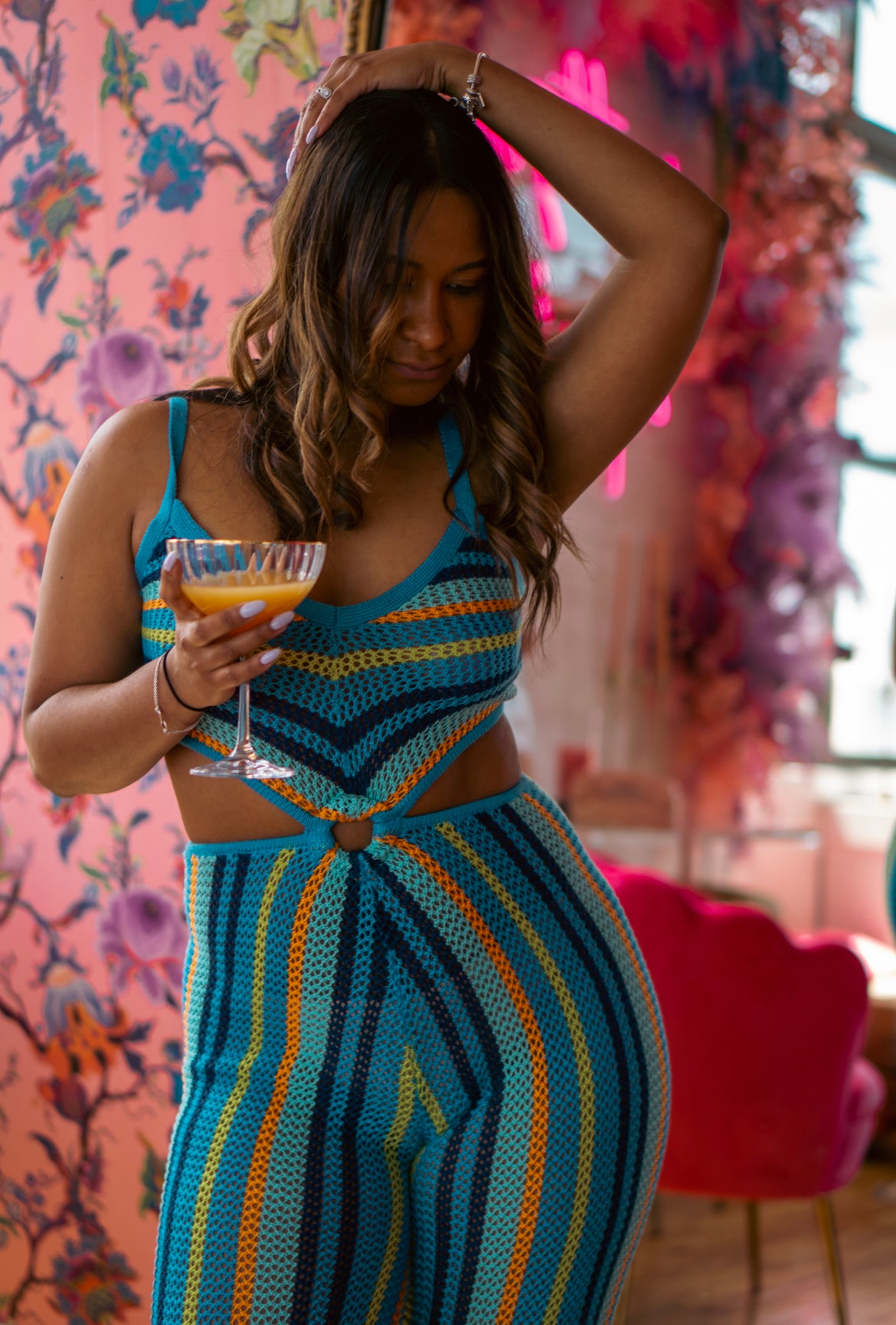 Vacation me please! This fun and flirty crochet romper is perfect for your next trip. Made of a knit material and stretchy fit; it's the perfect addition to your wardrobe.